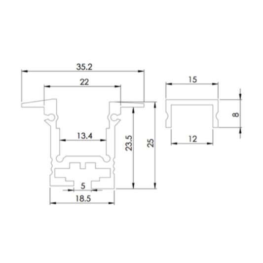 UP-Einbauprofil 18.5x25mm mit Kragen - LED-Profil