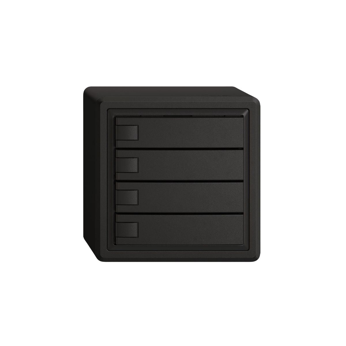 Der 4-fach Taster (potentialfrei) kann individuell als 1-, 2-, 3- oder 4-fach Taster belegt werden. Passende Abdeckungen sind separat erhältlich.
