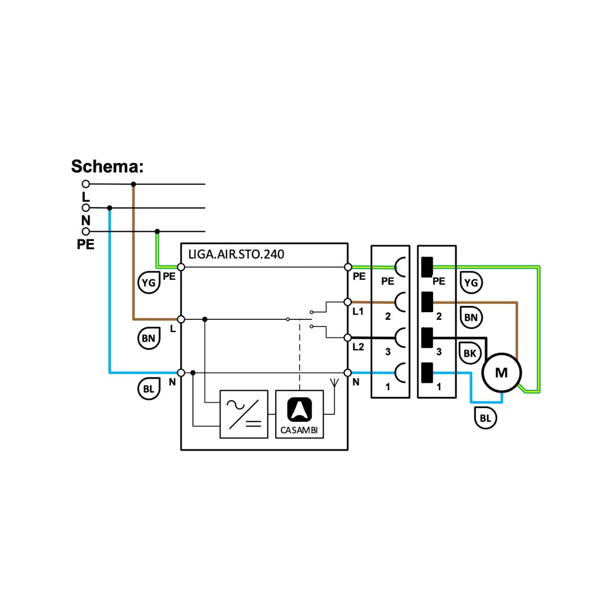 Das LIGA.AIR.STO240 ist ein kleines Storen-Modul für 230VAC und eignet sich ideal zur smarten Steuerung von Storen, Rollläden, Markisen und Jalousien über die Casambi-App. Mit einer Schaltleistung von bis zu 3A und einem niedrigen Energieverbrauch von max. 0,7 Watt ist das Modul besonders effizient. Dank vorgefertigter Kabel und Motoren-Stecker gelingt der Anschluss schnell und unkompliziert.